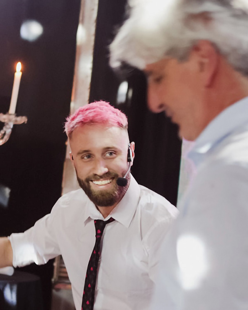 Desde siempre reconocido por mi particular vestimenta en combinación con color fucsia, hoy te invito a divertirte con mi humor y sorprenderte con mi magia.